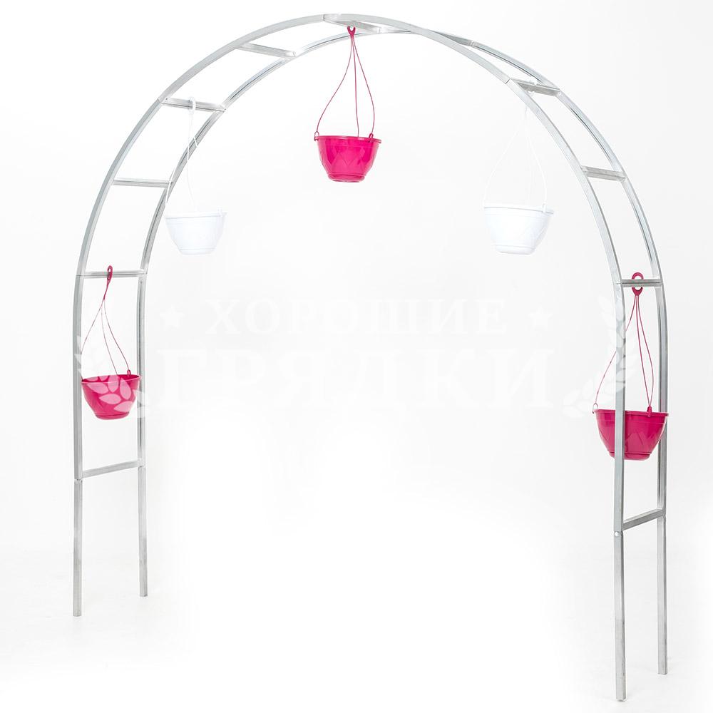 - арки для цветов разного размера. По ним можно пустить любые вьющиеся растения – от садовых роз до винограда. А дополнительно – подвесить стильные кашпо с низкорослыми цветами;