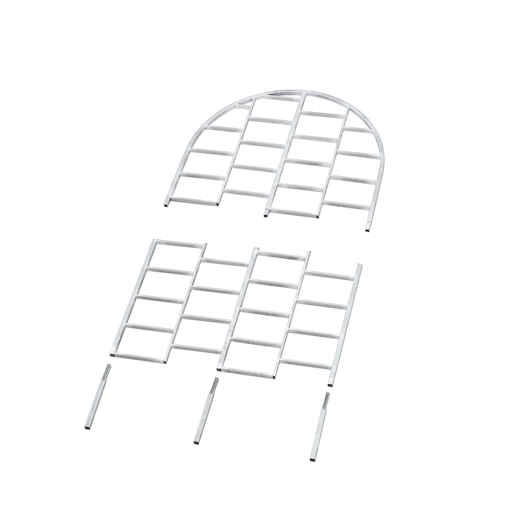 Все изделия изготавливаются из прочной стали. Арки и шпалеры устанавливаются на заглубляемые в грунт ножки, что обеспечивает их стабильность. Тепличная полка имеет металлическое основание и деревянную поверхность.